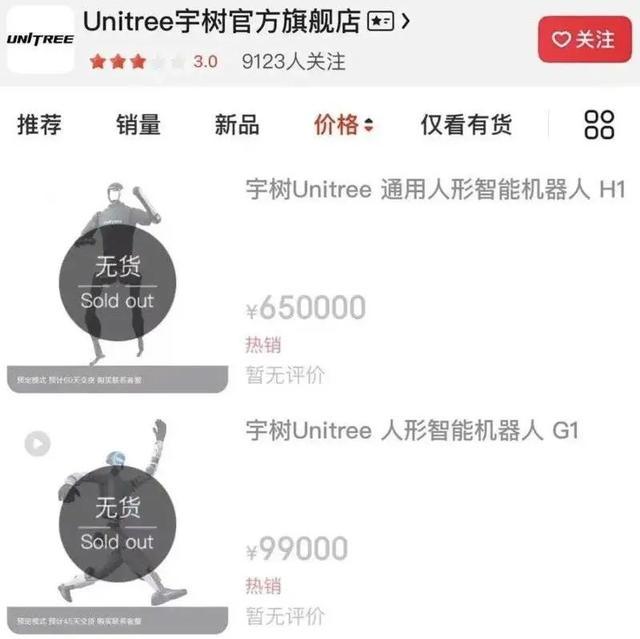 去年,宇树机器人推出了首个售价低于10万元的人形机器人,让行业为之一振。2月12日,宇树科技的H1和G1人形机器人正式在京东线上首发开售,其中,G1人形机器人在京东的售价为9.9万元,H1人形机器人售价为65万元。但上架不久后这两款机器人便被下架了。