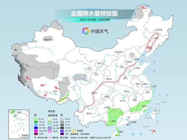 今明天(2月25日至26日),南方仍有较大范围降水。华南部分地区将现中雨,有利于缓和当地气象干旱,同时西藏等地部分地区还会有雨雪天气。后天,南方大部降水将短暂停歇。随着冷空气退却,南北方陆续开启大回暖,黄淮及其以南不少地方本月底最高气温将超20℃,江南多地有望入春。