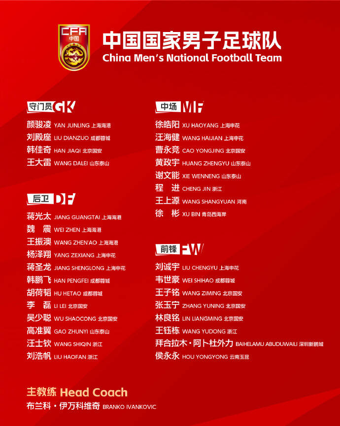 >>>北京时间2月28日,中国足协公布了新一期男足国家队集训名单,此前在U20亚洲杯表现出色的王钰栋和刘诚宇入选,塞尔吉尼奥、奥斯卡无缘本次名单。北京时间3月21日和25日,中国队将在世预赛中先后迎战沙特阿拉伯队和澳大利亚队。