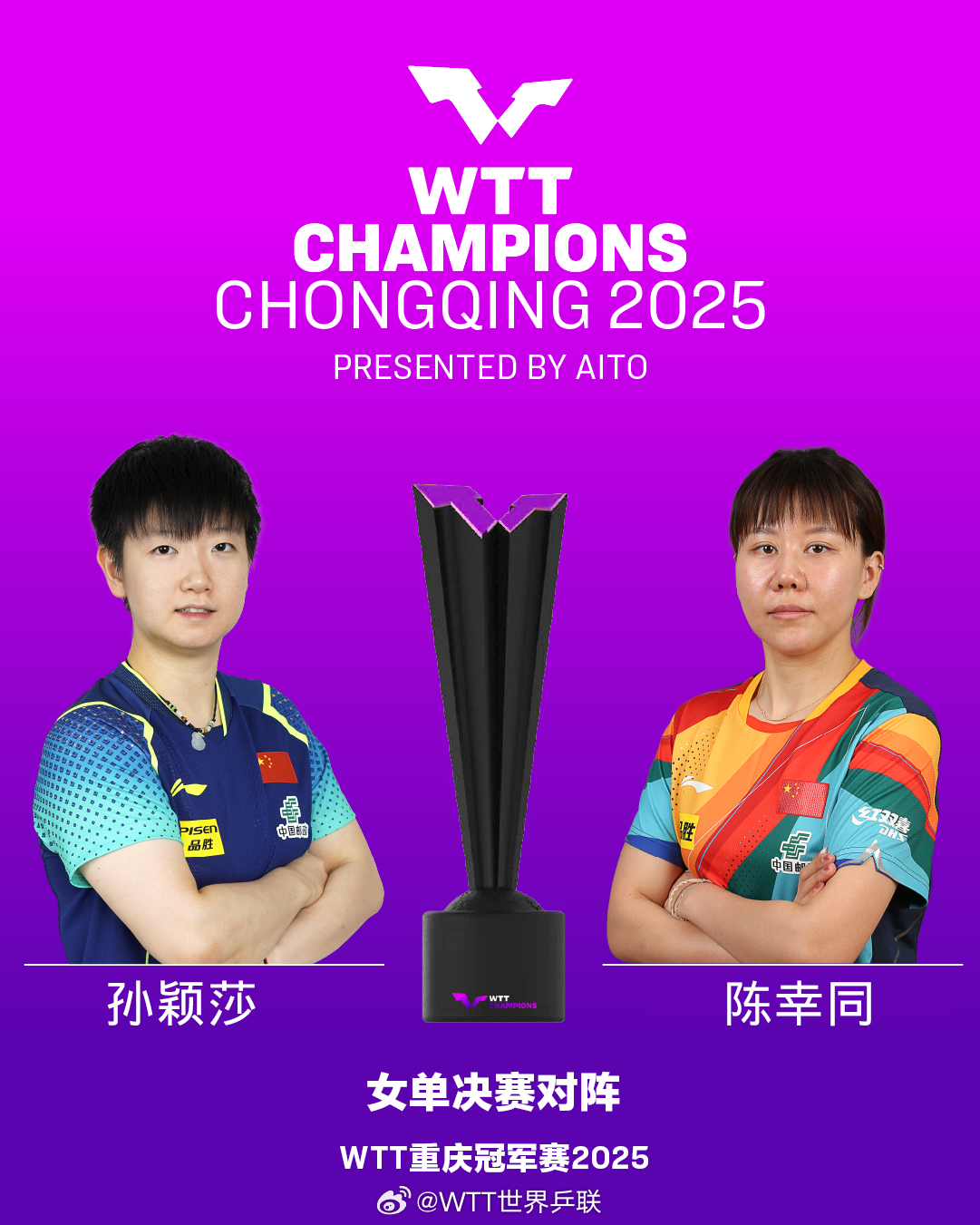 3月16日,在2025年WTT世界乒联重庆冠军赛女单决赛中,中国队选手孙颖莎以4-0战胜队友陈幸同,成功卫冕。