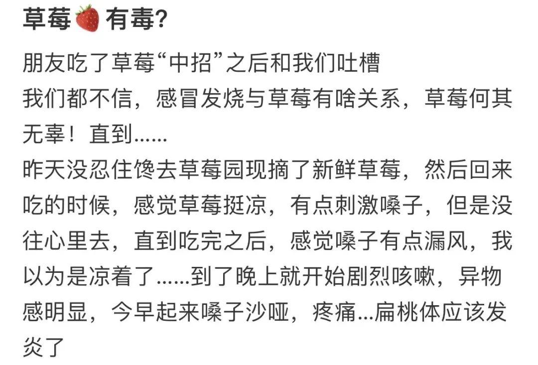 并警告大家“近期的草莓不宜食用”