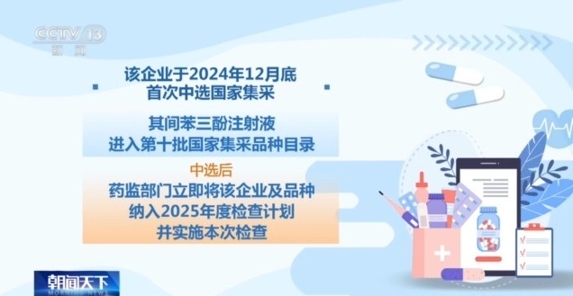 该企业于2024年12月底首次中选国家集采,其间苯三酚注射液进入第十批国家集采品种目录,中选后,药监部门立即将该企业及品种纳入2025年度检查计划并实施了本次检查。