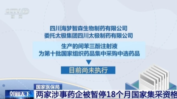 国家医保局:两家涉事药企被暂停18个月国家集采资格