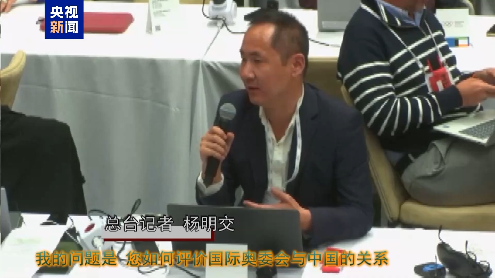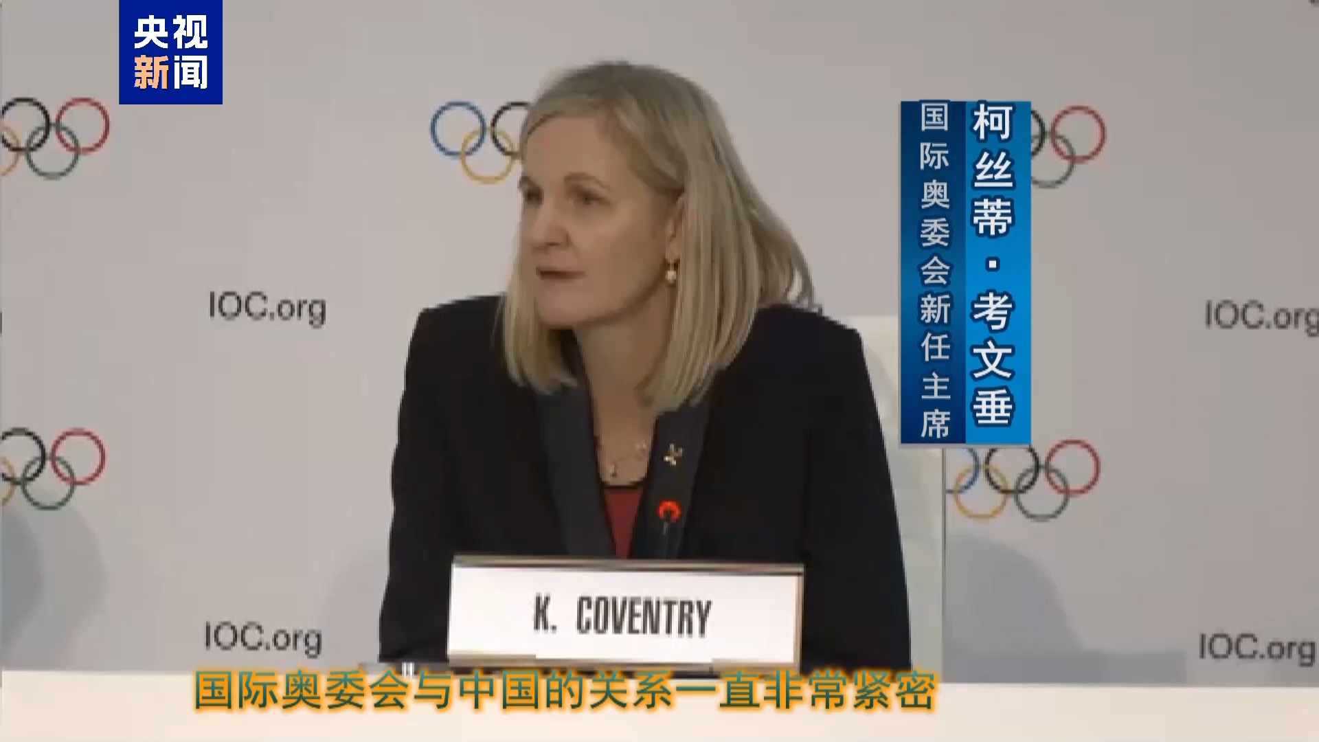总台记者 杨明交:考文垂女士,恭喜您当选。您如何评价国际奥委会与中国的关系,作为国际奥委会新任主席,您计划如何提升双方关系?