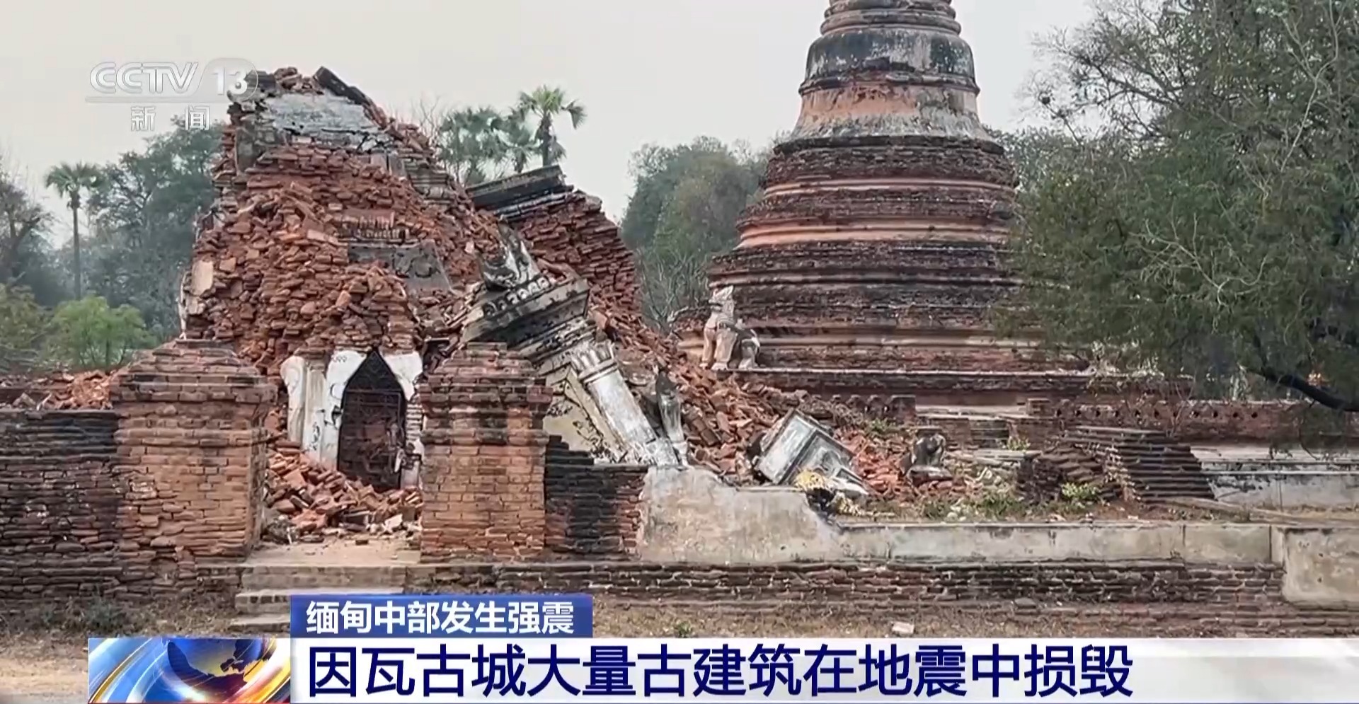 缅甸曼德勒地区的因瓦古城处于此次强震的重灾区,古城内大量历史古迹在地震中损毁。