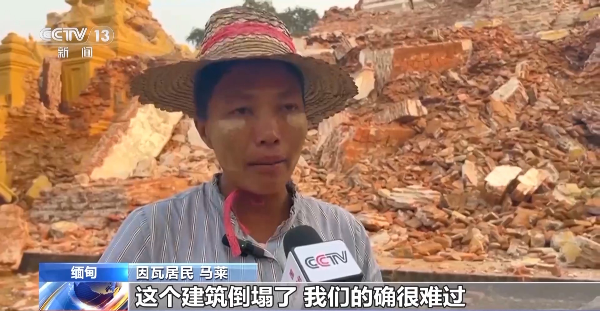 总台记者 刘畅:我现在是在缅甸曼德勒省的因瓦,这是一座历史文化名城,在我身后就是一处著名的历史建筑。但是我们可以看到,它已经在3月28日的大地震中完全毁坏了。