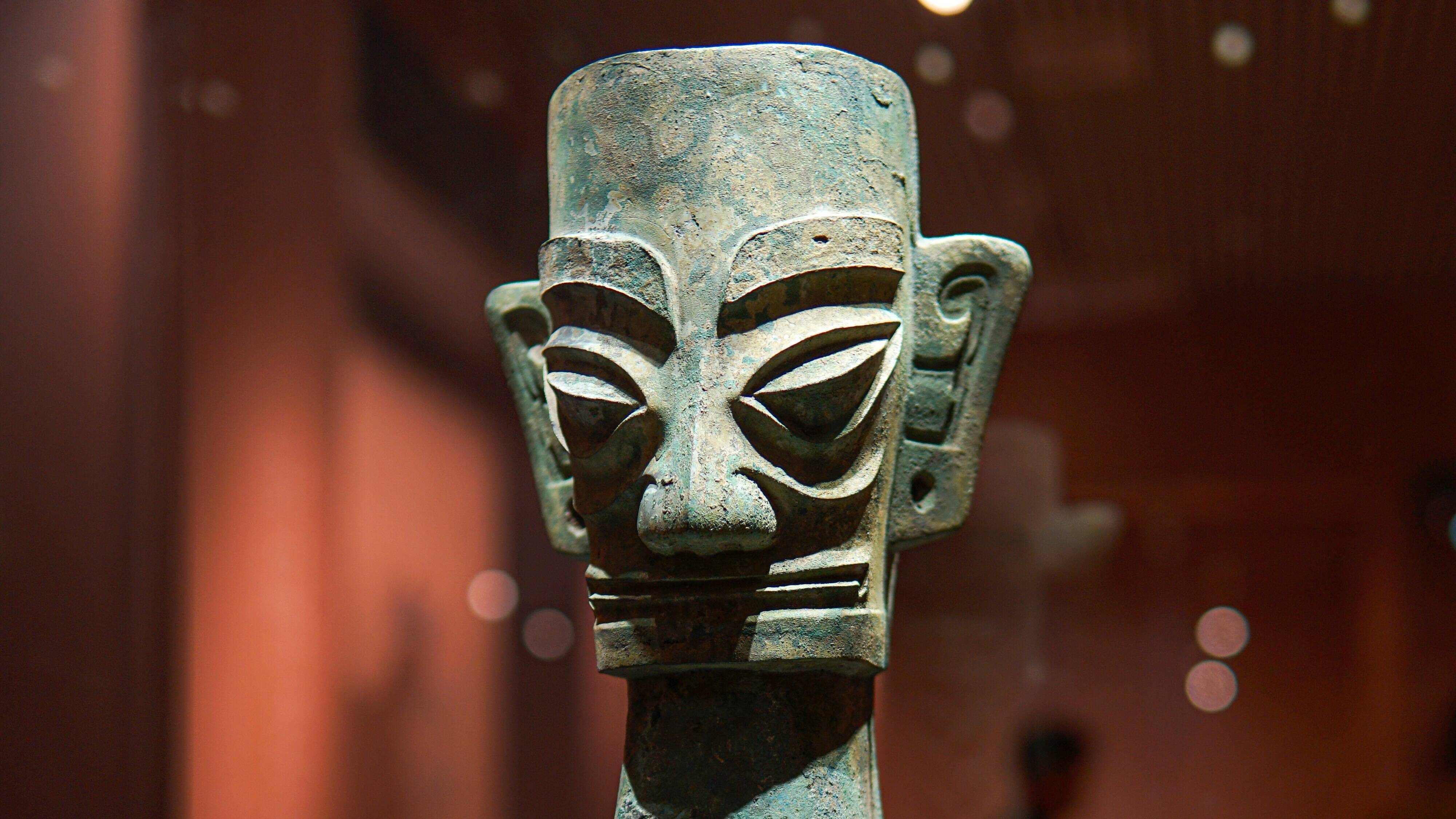 展览主体由“川渝地区”“云南地区”“黔桂地区”三大单元构成。第一单元以三星堆出土的青铜人头像阵列揭开序幕,展柜中商代铜眼形器与山东益都侯城遗址青铜礼器遥相辉映。
