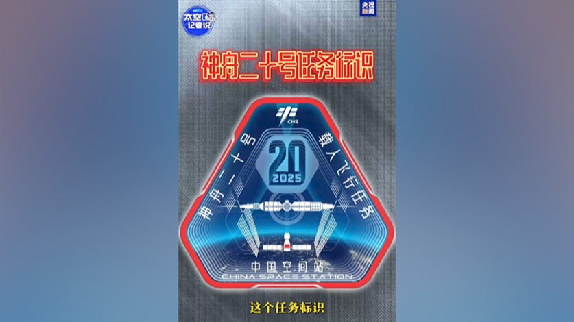 任务标识融合了传统与创新,以稳定三角形为基,象征航天人在经验基础上攀登新高峰。外框红色传承载人飞行使命,内部深蓝寓意浩瀚太空。主体神舟飞船径向对接空间站,太阳翼巧构中文“廿”字(即“二十”)。标识模拟了舷窗视角,层次分明,视觉纵深感十足,充满现代气息。