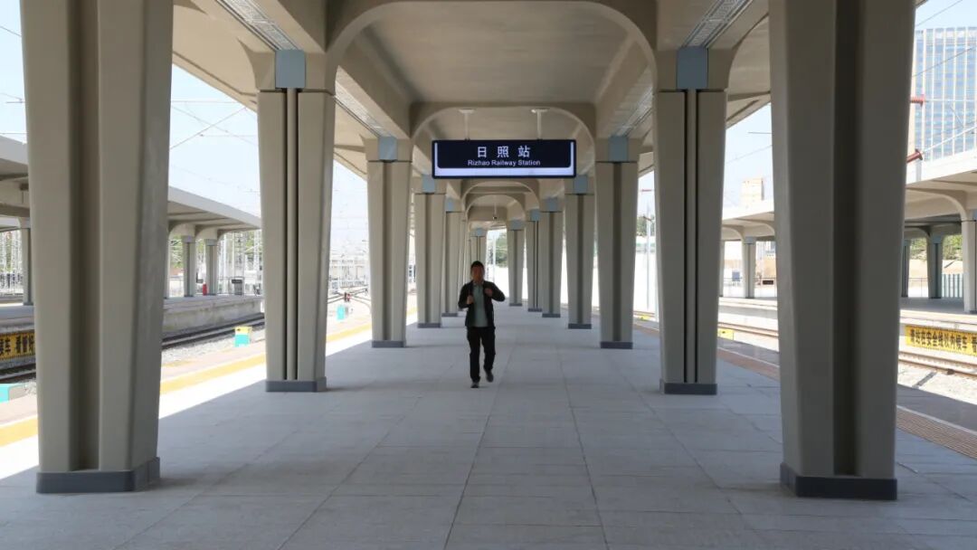 据了解,新建日照站车场规模4台7线,站房采用侧式站房与高架式候车厅组成,站房建筑面积4.35万平方米,地上2层,地下1层,局部设置了夹层,合理的空间布局,充分满足旅客多元需求。侧式站房区域主要为售票厅、母婴候车室、军人候车室等;候车厅两侧的夹层,设置了旅服商业区等设施,为旅客提供餐饮、购物等功能。