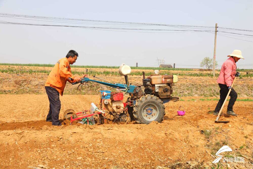 齐鲁网·闪电新闻4月24日讯 近日,日照市东港区三庄镇孙家庄村的田间地头呈现一派忙碌景象。耕地机轰鸣着翻起金黄色泥土,农用车满载化肥、农药穿梭田间路。村民们弯腰播种、挥锄清沟,将希望埋进这片苏醒的土地。