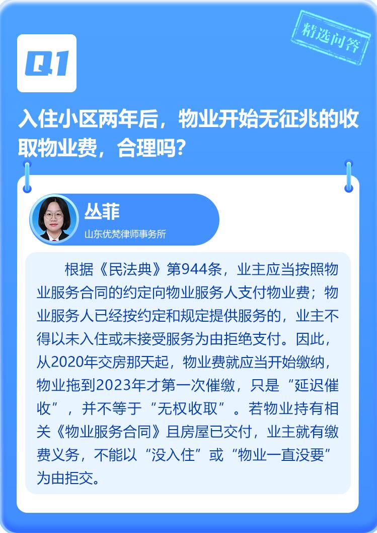入住小区两年后开始无征兆收取物业费,合理吗?工作十二年被辞退,应该如何应对?一起来看“闪电律师团”本周精选问答!