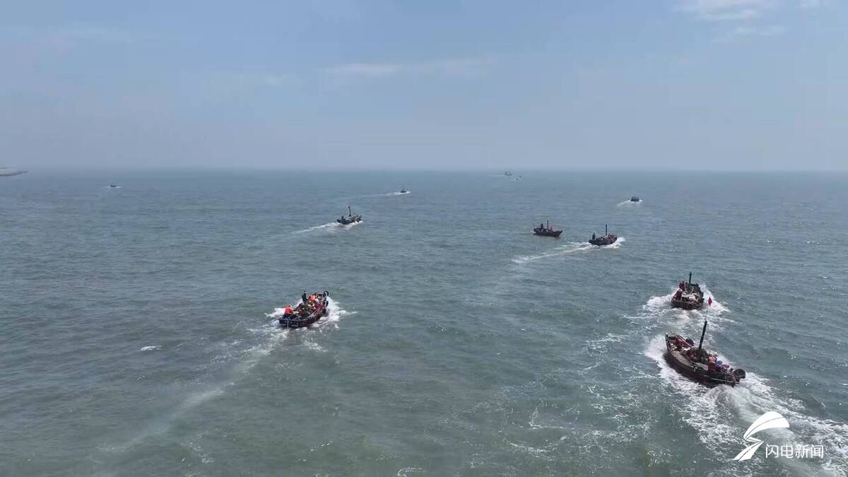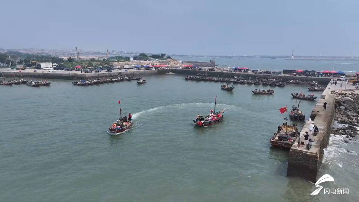 中午12时整,随着众人的欢呼声响起,渔船依次解缆起航。船身首尾相接,马达的轰鸣声震耳欲聋,数十艘渔船向着大海深处驶去,场面蔚为壮观。