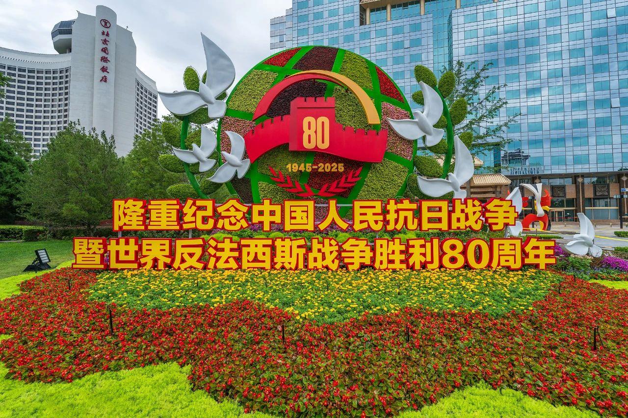 CYQY-生活与科技近日,纪念抗战胜利80周年主题花坛亮相北京长安街沿线,吸引了不少市民游客打卡拍照。