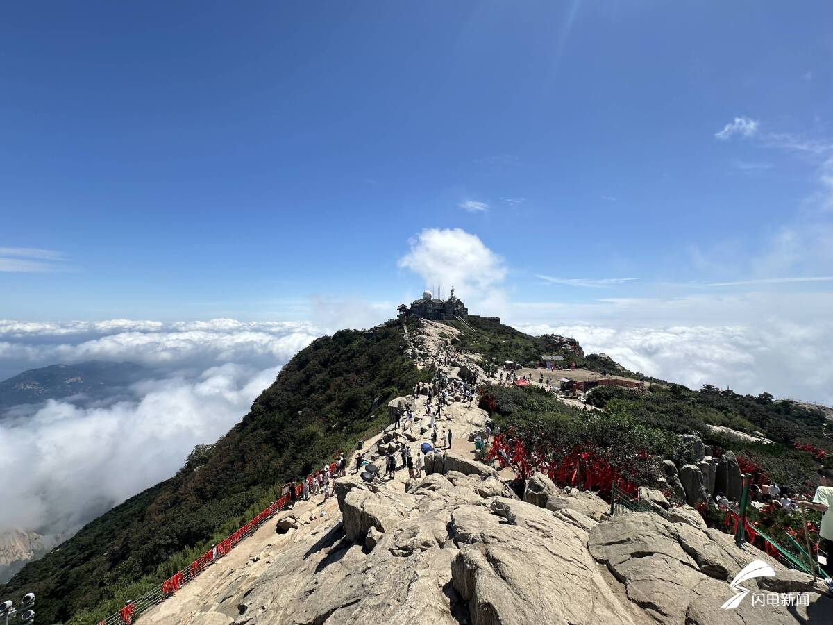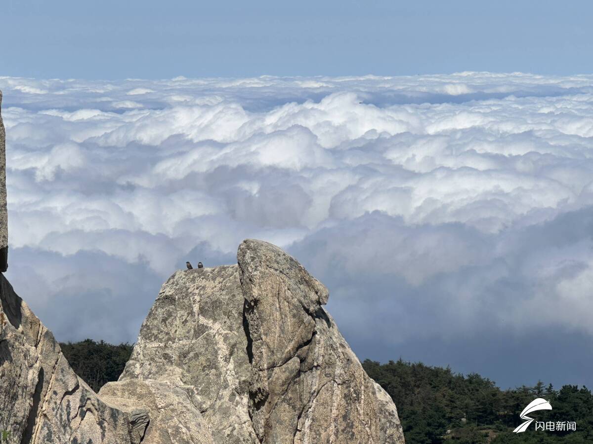 CYQY-生活与科技齐鲁网·闪电新闻8月25日讯 8月25日,秋雨过后的泰山之巅,迎来难得一见的 “云海玉盘” 奇观,乳白的云海如温润的玉盘般铺展山间,远处的云海与天际交融,分不清哪是云、哪是天,只觉心随云动,连呼吸都染着清冽的诗意。与黛色峰峦、朱红古建相映成趣,引游客驻足惊叹。