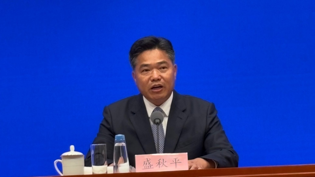 8月27日上午,商务部副部长盛秋平在国新办发布会上介绍服务贸易情况。澎湃新闻记者赵利新 图