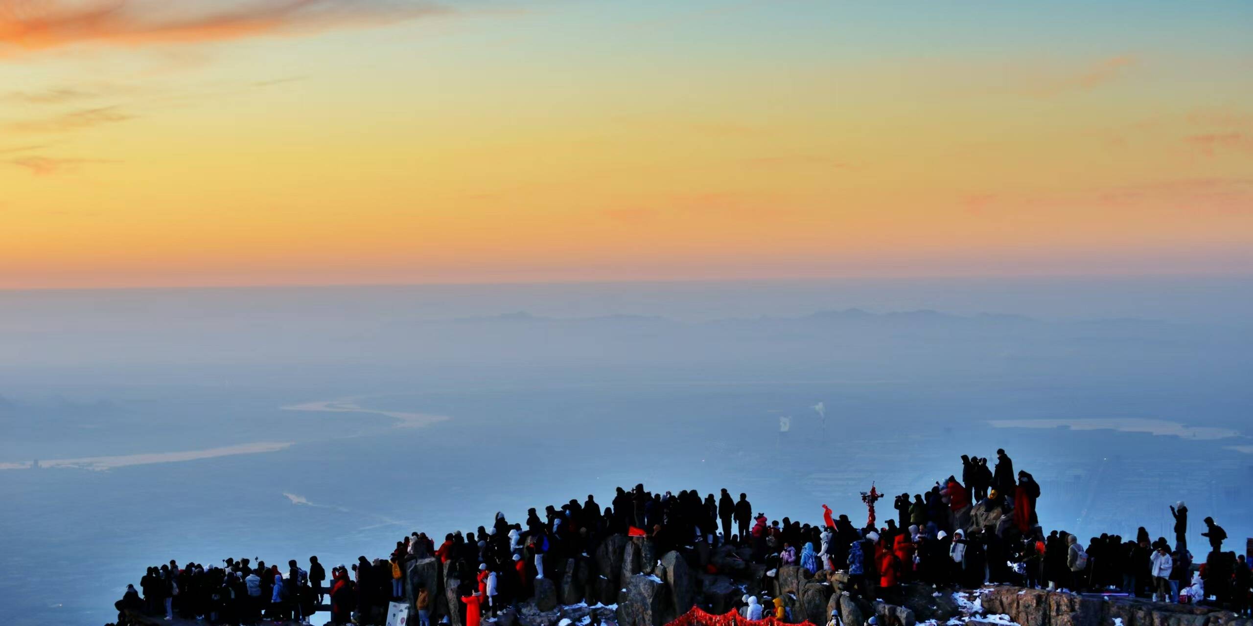 近期泰山日出时间为5:30左右,在夜间游客量临近限量阈值时,从山下徒步到达玉皇顶、日观峰、瞻鲁台等观日出区域约需七至八小时。考虑到索道夜间暂停运营、客运车辆限时运营等因素,我们建议体能较弱、有观日出计划的游客,务必在22:00前进山,以便在日出前抵达山顶观日出区域。计划22:00后进山的游客,若因体力或其他原因导致登顶时间较长的,建议选乘“午夜观日出专线车”进山(红门游客中心广场每晚10:30至次日凌晨0:30发车),乘车抵达中天门后再徒步半程至山顶。