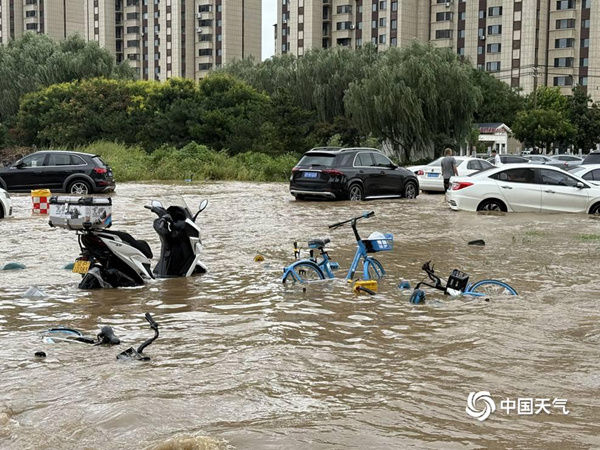 昨天暴雨后的葫芦岛,道路积水成河、车辆被淹。(图文/刘新)