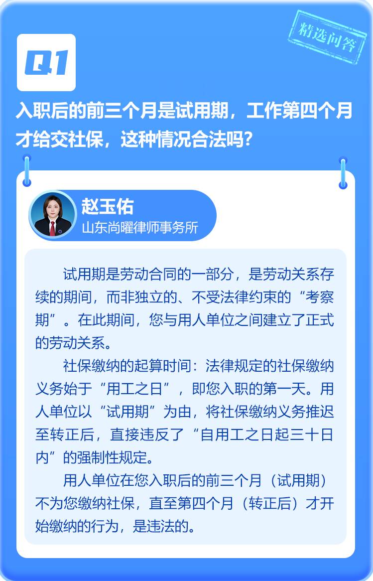 试用期期间不交社保,合法吗?交通事故对方全责,怎么要误工费?一起来看“闪电律师团”本周精选问答!