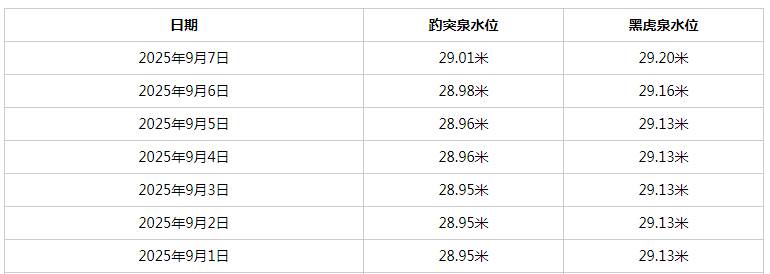 >>>济南市城乡水务局信息群消息:7日早7点,趵突泉地下水位达到29.01米,较前一天抬升3厘米,超过去年同期29.00米。与此同时,黑虎泉地下水位也达到了29.20米。