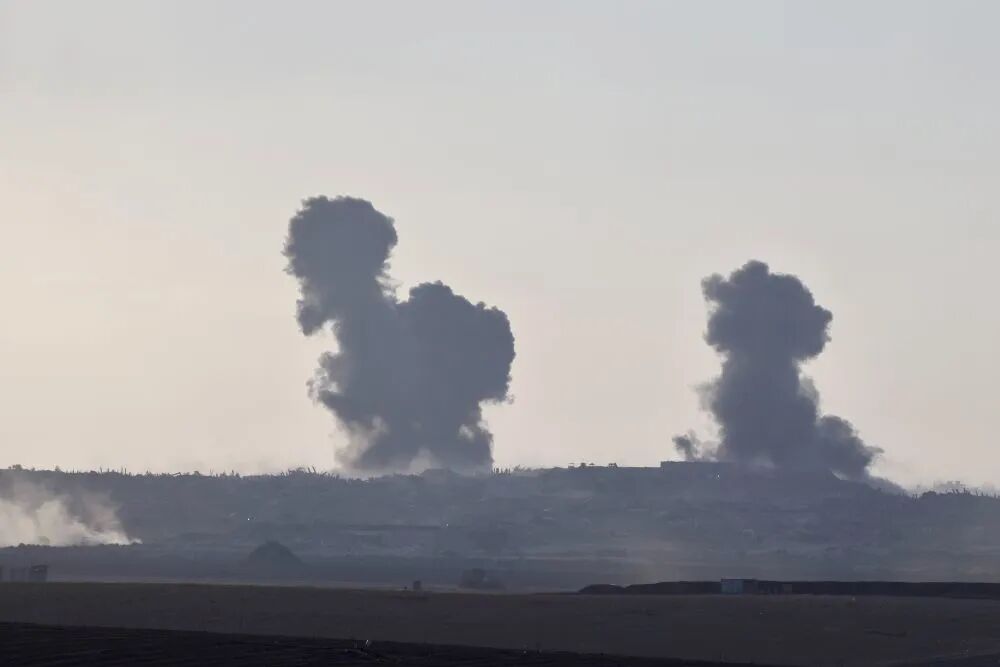 这是9月16日从加沙边境以色列一侧拍摄的加沙地带遭袭后升起浓烟。新华社发(贾马尔·阿瓦德摄)