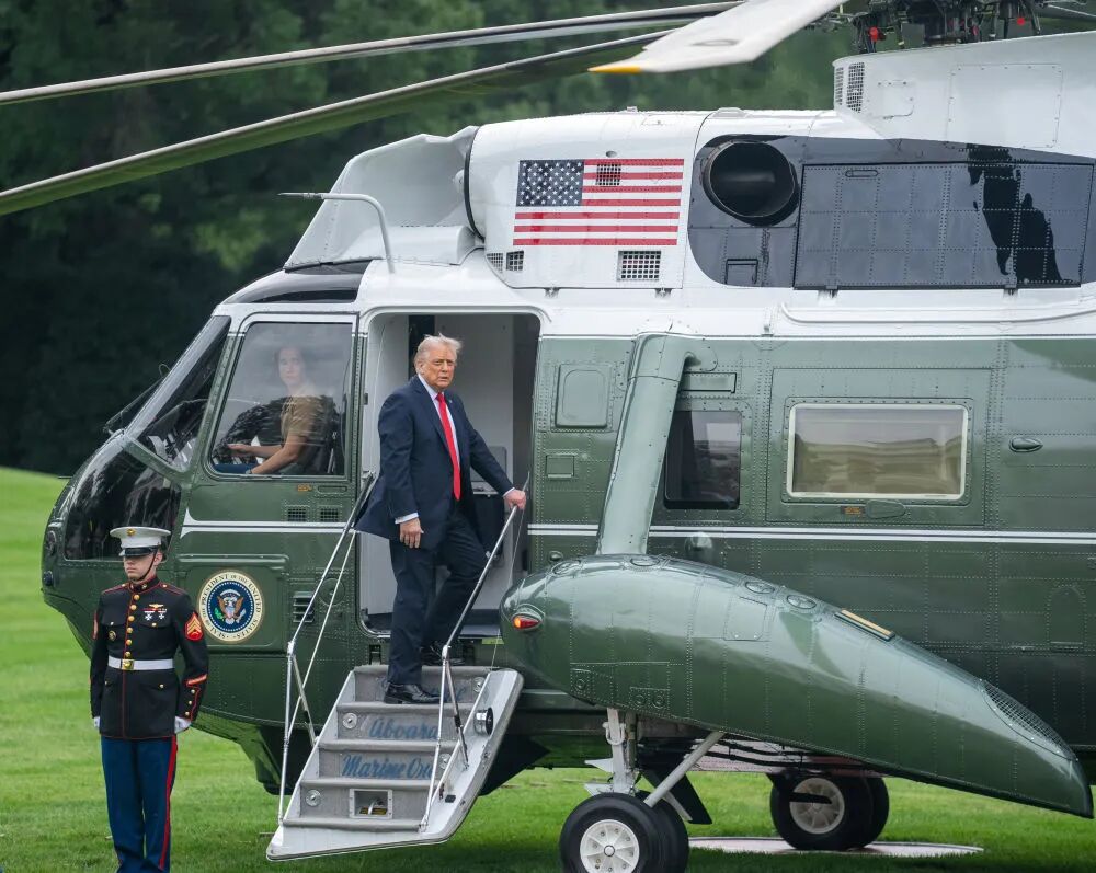 9月16日,在美国首都华盛顿,美国总统特朗普登机离开白宫,启程对英国进行国事访问。新华社记者 胡友松 摄