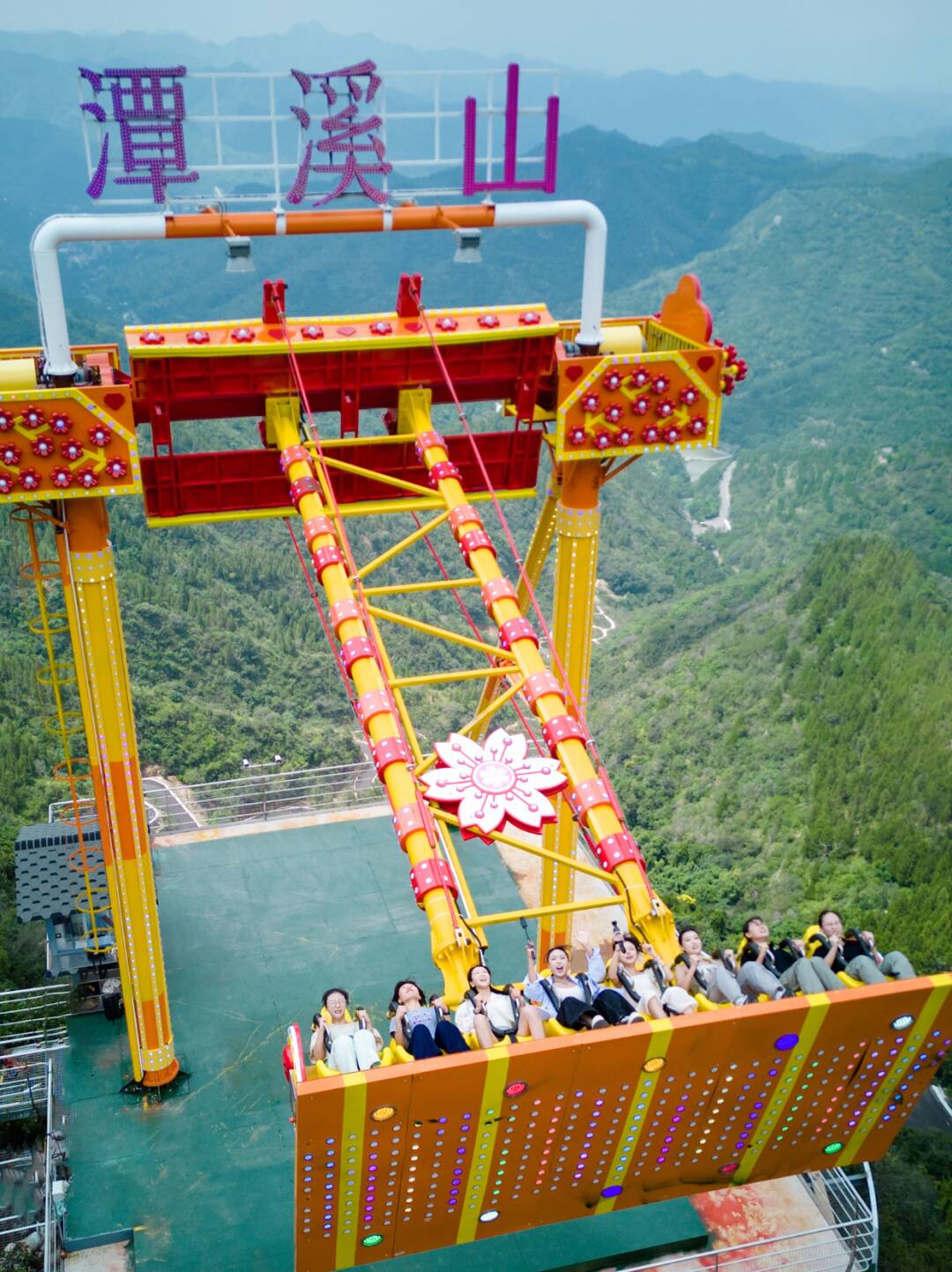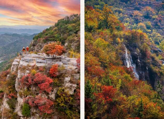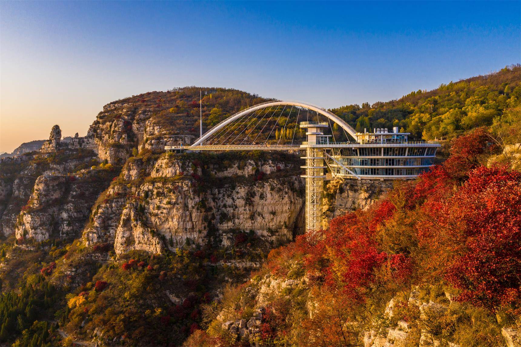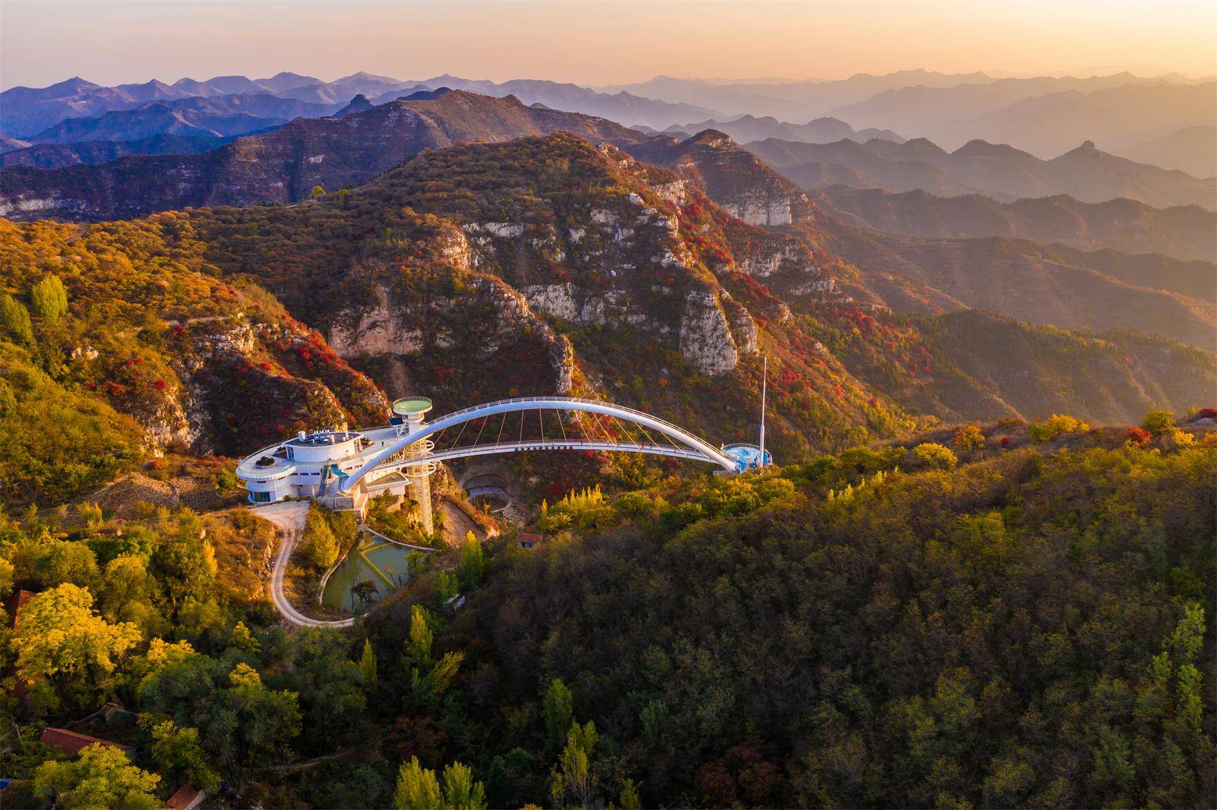 山东首个悬崖大秋千与高空玻璃桥遥遥相望,明黄的配色与漫山秋叶相得益彰。当秋千在海拔740米的山巅被推出去的那一刻,瞬间便闯入一个被秋天点燃的世界。