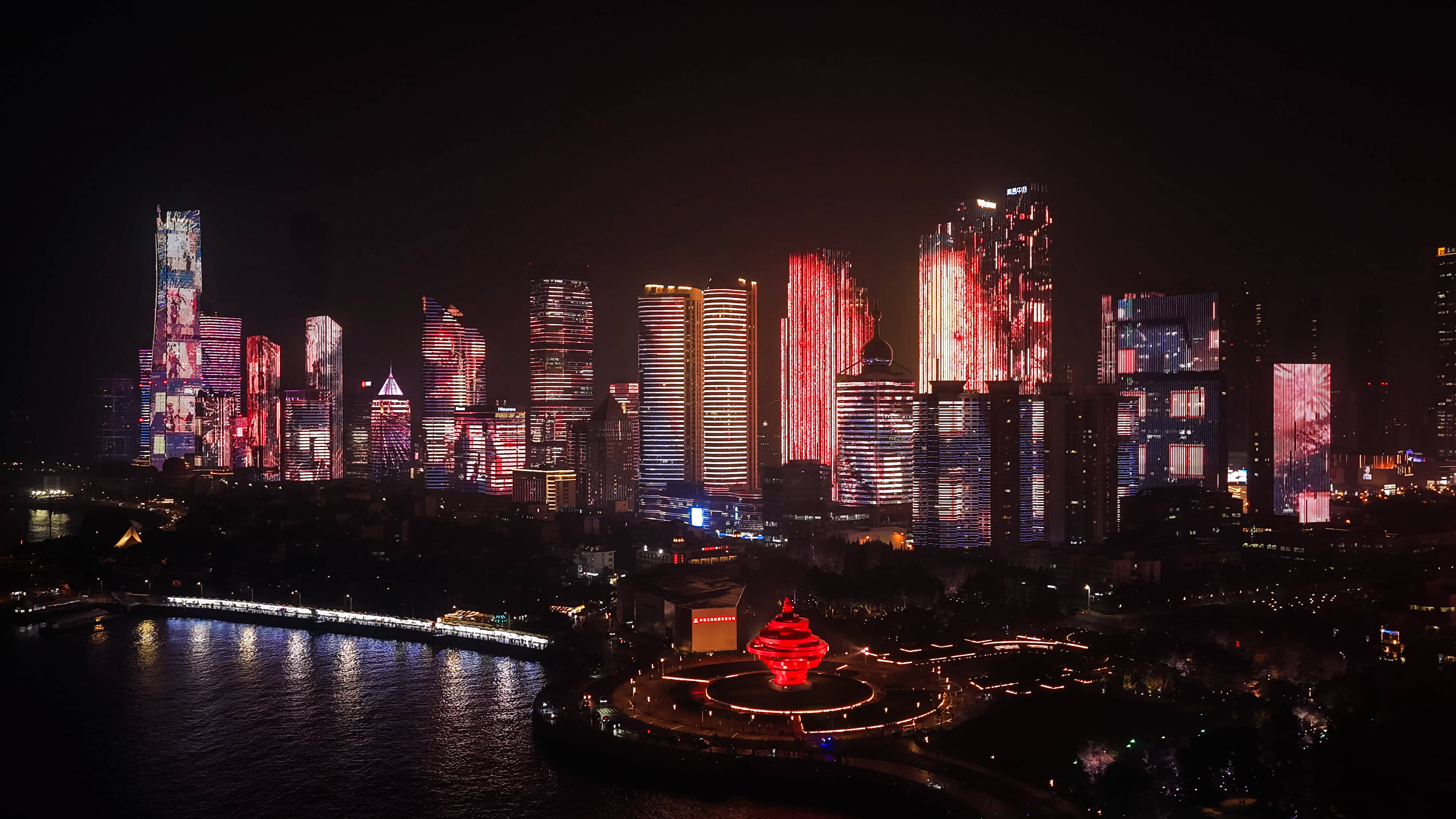 最后在炽红长卷中,跃动的文字展示出“中华民族伟大复兴势不可挡”的庄严宣示和“盛世华诞与国同庆”的欢庆标语,携着鎏金的城市印记次第入画,满屏烟花绽放,在绚烂光影中激发爱国热情,汇聚奋进力量。