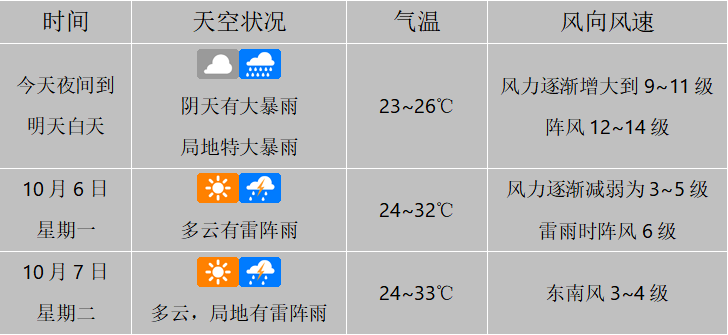 海口有暴雨到大暴雨、局地特大暴雨