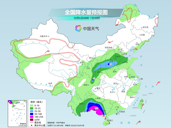 受其影响,今明天,海南、广东、广西、云南等地将陆续进入本次台风雨的核心时段,部分地区有大暴雨,局地特大暴雨。同时,北方雨带有所北抬,陕西、山西、河北、河南、山东部分地区有大雨,局地暴雨。