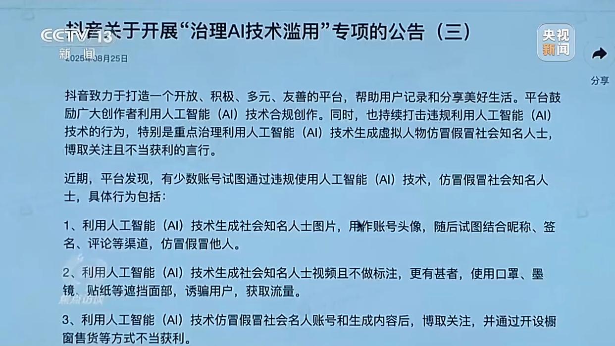 当下,在短视频平台或者是直播平台上购物成了很多人的新选择。刷视频的时候,还经常会冒出熟悉的明星,用流利的乡音推销农产品,有的还进行直播带货。这些所谓的明星很可能是仿冒的。近段时间,网络上一些商家利用AI技术仿冒带货。有的借助名人效应,仿冒专家学者、奥运冠军、影视明星;也有的借助产地效应,冒充知名品牌。消费者、粉丝难辨真伪,慕名下单,却不知道自己被蒙了。这些游走在灰色地带的“AI李鬼”,正拷问着我们的数字治理能力。