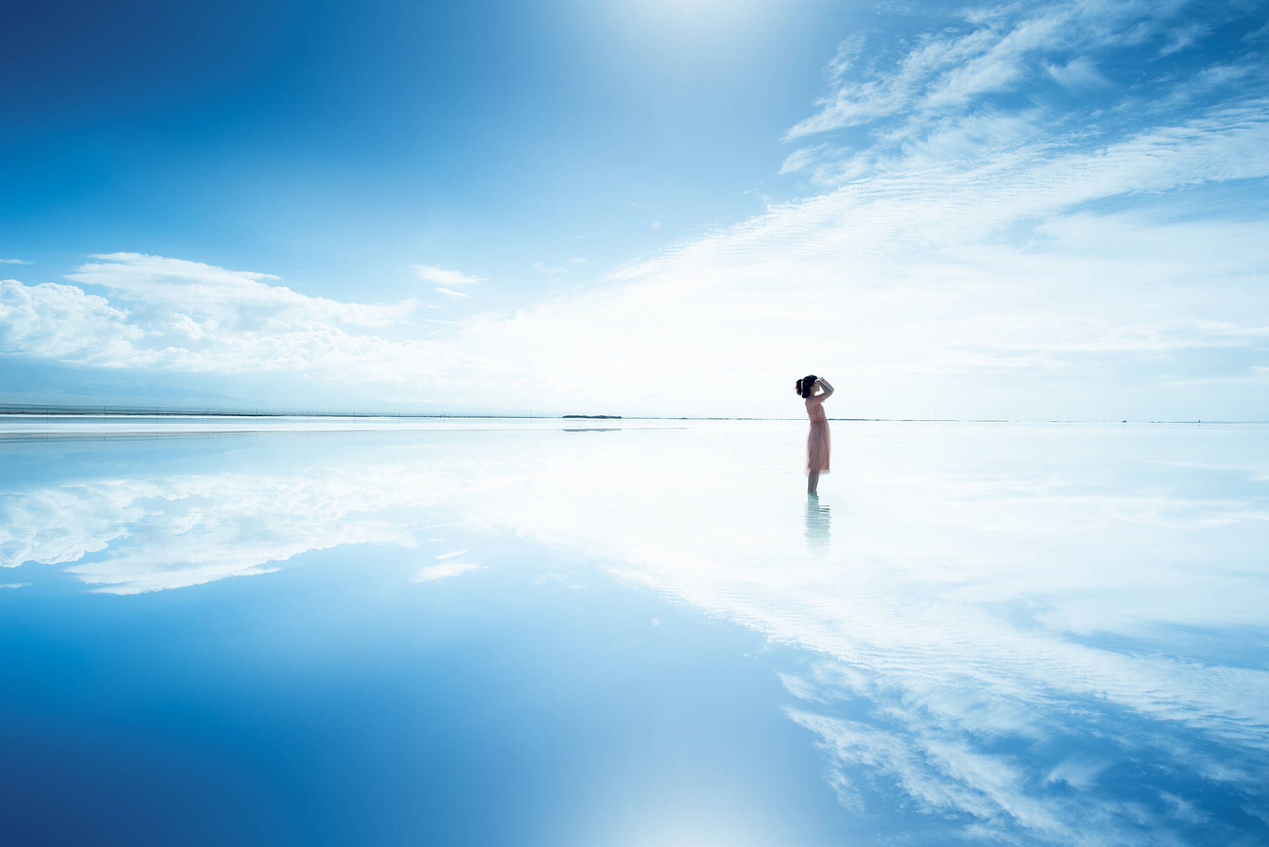 一天晌午,我仰卧在沙滩上。天是那样高、那样蓝、那样无穷的深远。有一层轻纱似的云向西方飞驶,而更高的天穹上另有发亮的羊毛卷一样浓密的白云,却往相反的方向飞。在天的缥缈处,云飞得那样轻快,使你觉得整个天空在浮游、在悠荡,不过两层云飞到海的上空就凝然不动了,所以海面上没投下一点阴影,海绿得发亮,我向遥远的海平线望去,那儿闪跳着雪白的浪花,海在笑,露出洁白皓齿。荷马形容海:“鲜明灿烂,像酒的颜色,或者像紫罗兰色。”海是多么美呀!