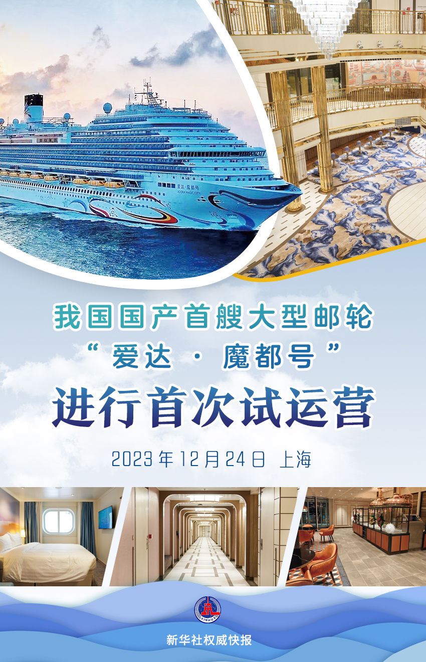 12月24日,国产首艘大型邮轮“爱达·魔都号”在上海离港,进行首次试运营