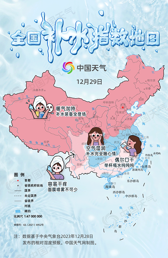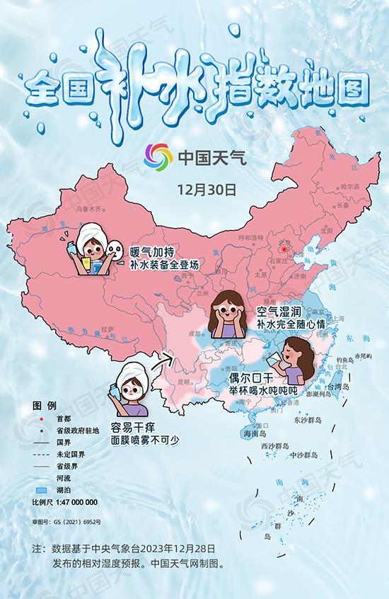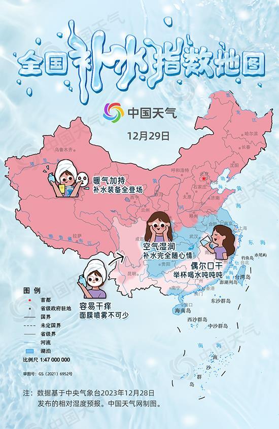 2023年尾声,我国大部雨雪不多,气温总体呈回升态势,不少小伙伴直呼“干燥到快要裂开”。目前,多地已进入一年中的干燥时段,中国天气网特别推出全国补水指数地图,看看你家有多干。同时奉上补水四大误区,助你滋润过冬。