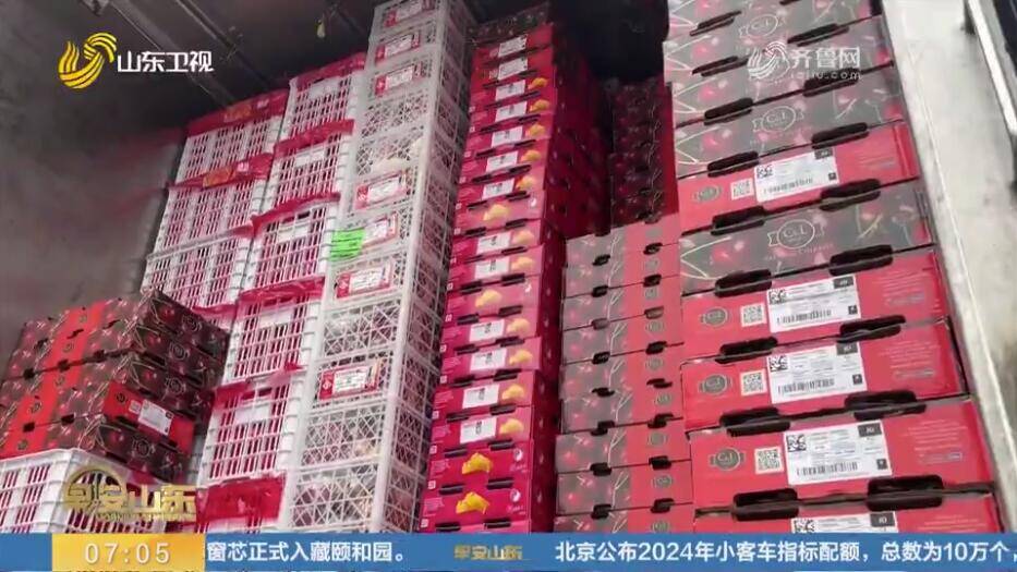 在淄博博发水果批发市场,商户告诉记者,进口车厘子从去年10月份开始是空运上货,那时的价格在每斤200块钱左右。但随着海运车厘子的陆续到货,进入2024年后,价格下降很多。果品商户邵猛说:“这个个头就偏大一点,像这个价格现在也就40块钱左右一斤。那种小的价格比较低,临到过年,价格会更低。”
