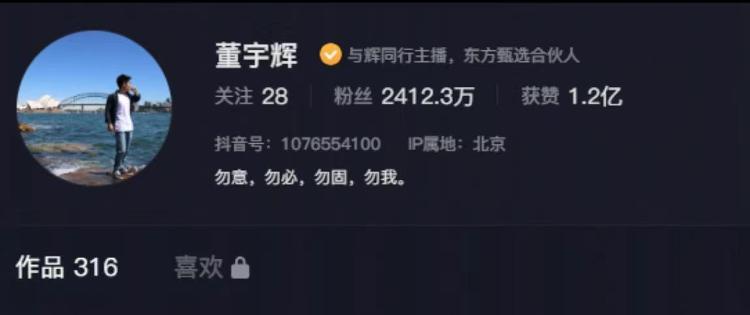 董宇辉抖音账号认证已经变更为与辉同行主播、东方甄选合伙人。变更前,董宇辉账号认证为东方甄选主播。