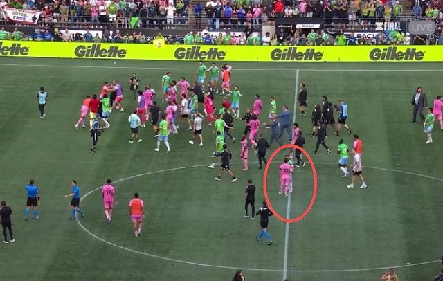 联盟杯决赛,迈阿密国际对阵西雅图海湾人。0-3,梅西、苏亚雷斯、德保罗、布斯克茨、阿尔巴领衔的迈阿密国际惨败,无缘夺冠。比赛结束之后,双方爆发大规模冲突,场面陷入混乱。双方球员扭打在一起,还有球员直接出拳击打对手,苏亚雷斯则吐口水“袭击”对方教练,梅西远远观望,没有参与冲突。