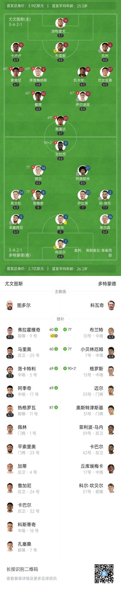 第90+4分钟,多特后场边路失误,卡卢卢断球后直接弧线传中,弗拉霍维奇抢点破门!尤文3-4多特↓