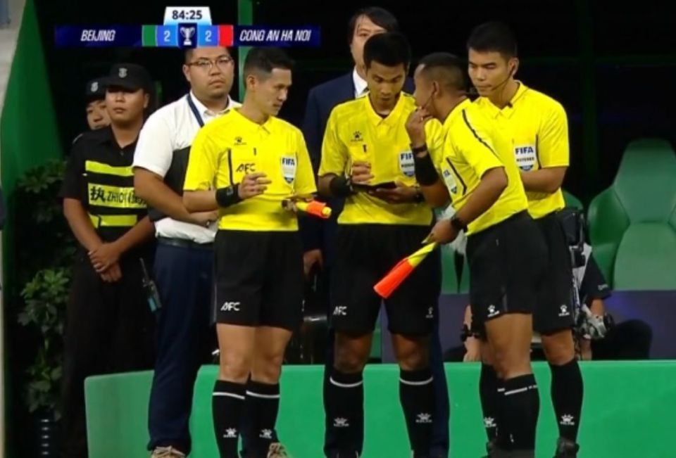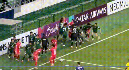 多位河内球员遭到攻击,他们随即向主裁判投诉。主裁示意比赛暂停,并与第四官员进行沟通。