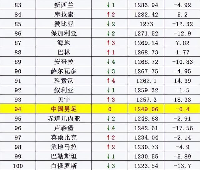 实际更值得警惕的是 "集体进步效应"在亚洲非常明显,一方面是各个国家的青训水平都在飞速发展,人才涌现很多,另一方面就是印尼、沙特、卡塔尔等国的归化力度持续加大,他们的水平在这种综合效应下,实力在快速提升,国足面临的竞争压力同步增强,结果就是2002 年国足凭借亚洲 4.5 个名额出线的历史,与如今近 3 倍名额仍缺席的现实形成鲜明对比,更说明核心矛盾在于自身发展的缓慢造成竞争力不足而非名额稀缺。(以下为世界排名中,目前国足位置)