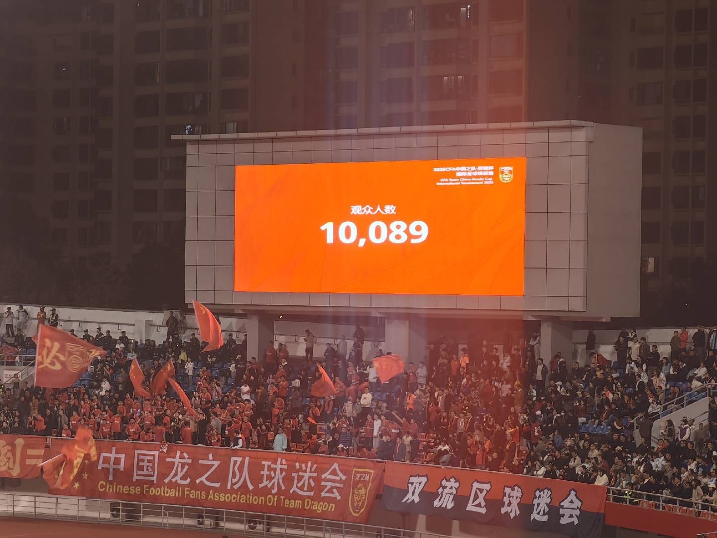 本场比赛上座10089人,破万打破熊猫杯上座纪录