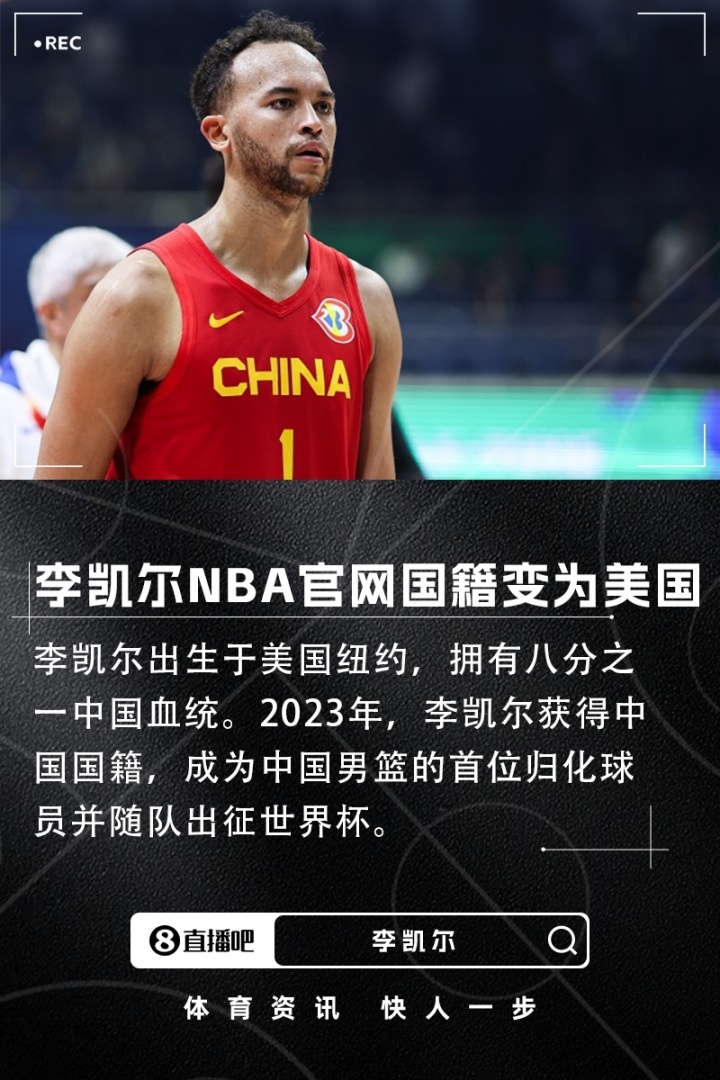 直播吧12月23日讯 据NBA官网的最新信息显示,爵士球员李凯尔的国籍已经更改为美国籍。