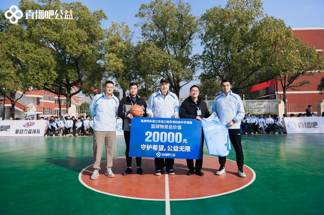 活动尾声,“未来无限”公益项目负责人田欣欣代表直播吧向苏港初级中学捐赠篮球和训练器械,张勇军、侯向锋则向学校赠送签名球衣和纪念品。对于直播吧和两位篮球名宿的馈赠,苏港初级中学校长洪晨连连致谢:“非常感谢直播吧邀请篮球专家到学校现场指导,并捐赠公益体育器材,为每一个热爱篮球、热爱运动的孩子注入追求梦想的勇气。”