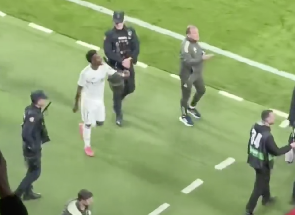 维尼修斯染黄后还和对方的球员发生言语上的冲突。而在比赛结束后,维尼修斯又和对方球员打起了口水仗,他生气地要冲到对方球员面前,但被工作人员拦下。维尼修斯看上去很激动,多次试图推开众人并找对方球员理论。