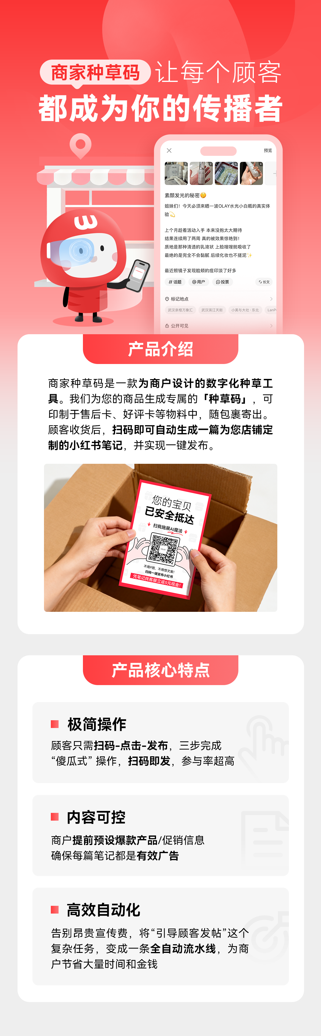 操作便捷 后台配置简单,1-2分钟即可生成一个门店种草码,顾客扫码即发